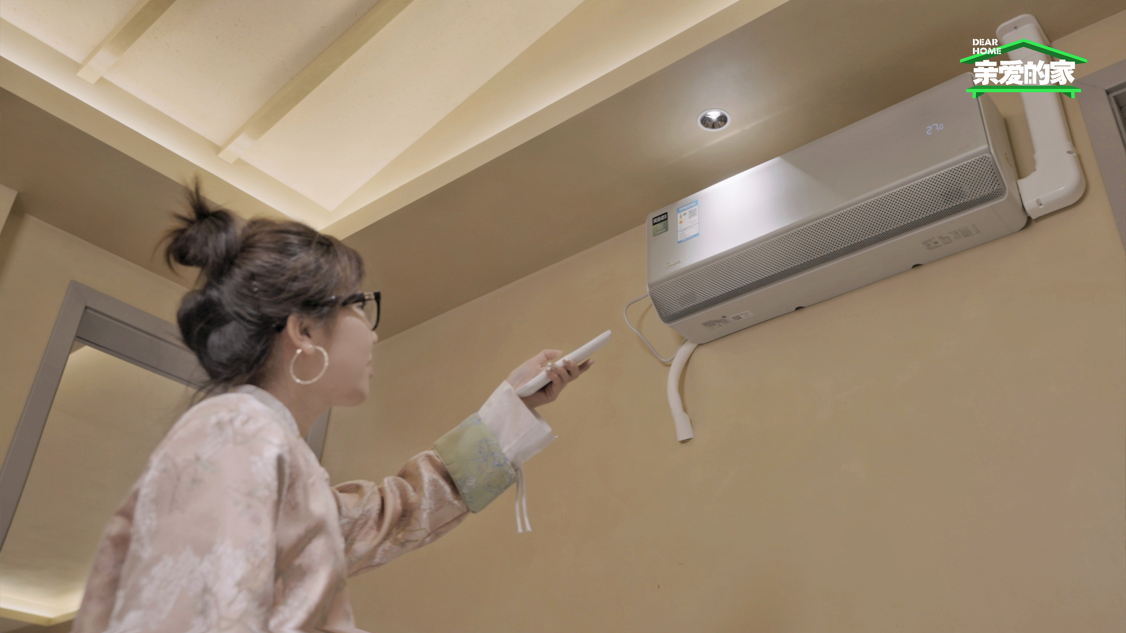 中,朱秋影选择了美的空调为入住小院的客人提供舒适体验。客厅使用了美的鲜净感空气